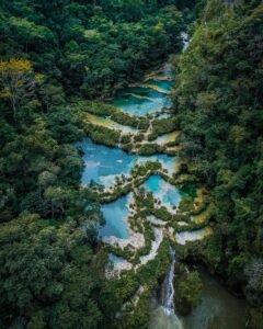 Lanquín, ubicado en el departamento de Alta Verapaz, Guatemala, es el punto de acceso a uno de los destinos naturales más impresionantes del país: Semuc Champey. Esta maravillosa formación geológica está compuesta por una serie de pozas naturales de agua turquesa, rodeadas de una exuberante selva tropical. Desde Antigua, los viajeros pueden tomar un recorrido hacia Lanquín, disfrutando del paisaje montañoso y la cultura local en el camino. Semuc Champey es famoso por su belleza escénica y actividades al aire libre como el senderismo, el tubing por el río y la exploración de cuevas. Este destino ofrece una experiencia única en la naturaleza, ideal para los aventureros y amantes del ecoturismo.